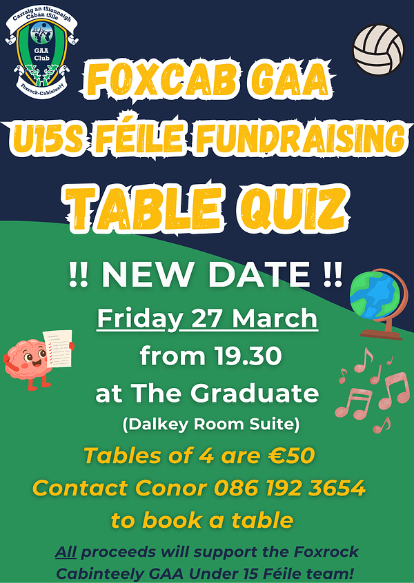 The annual FoxCab Table Quiz is on the new date of Friday 27 March